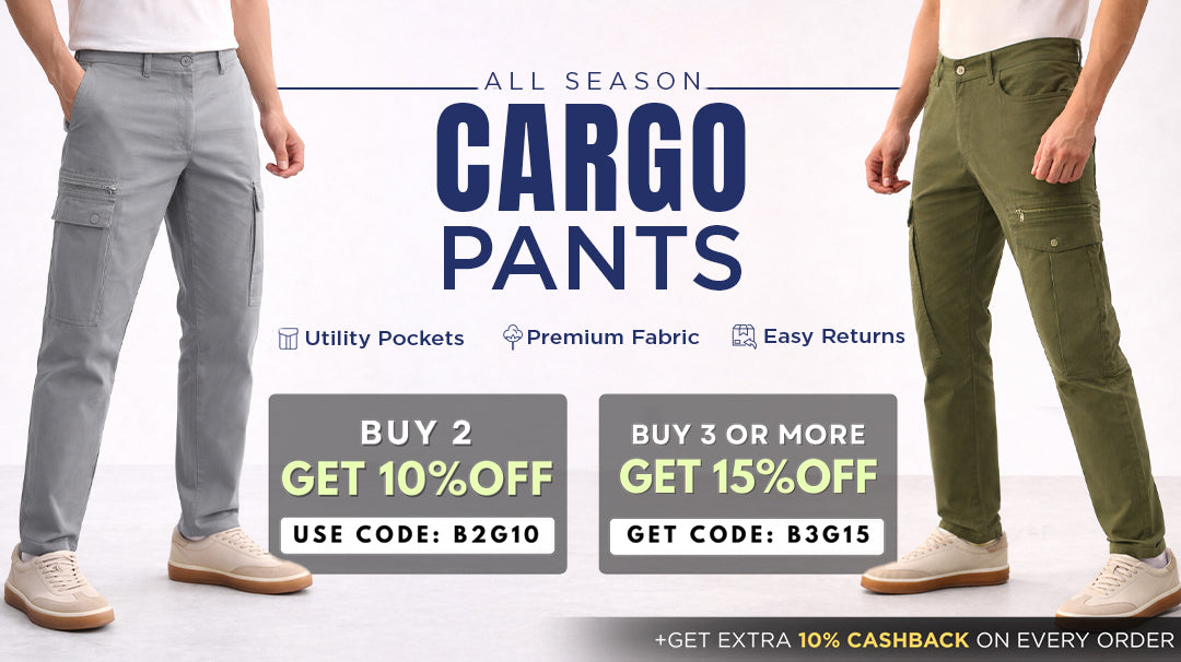 Whether you're running errands, stepping out in style, or just chilling on warmer days, cargo pants for men offer the perfect mix of practicality and fashion. From slim fit cargo pants for that tailored fit to loose fit cargo joggers or cargo trousers for men for relaxed comfort, there's something in the latest collection for every vibe.