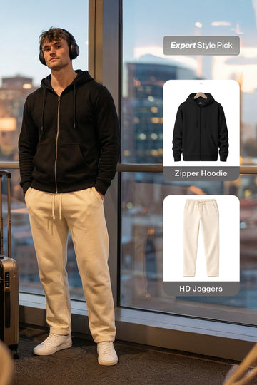 Built for extended wear, this look focuses on softness and flexibility. The relaxed structure supports sitting and walking with ease. Ideal for flights and long journeys.