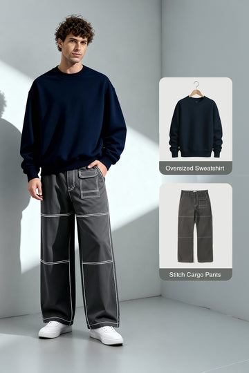A clean solid sweatshirt paired with structured trousers for a refined everyday feel. The simple silhouette delivers comfort while still looking neat and put-together. Ideal for relaxed office days, cooler mornings, or calm city routines. Soft textures ensure warmth without heaviness. A dependable Nobero staple built around simplicity and comfort.